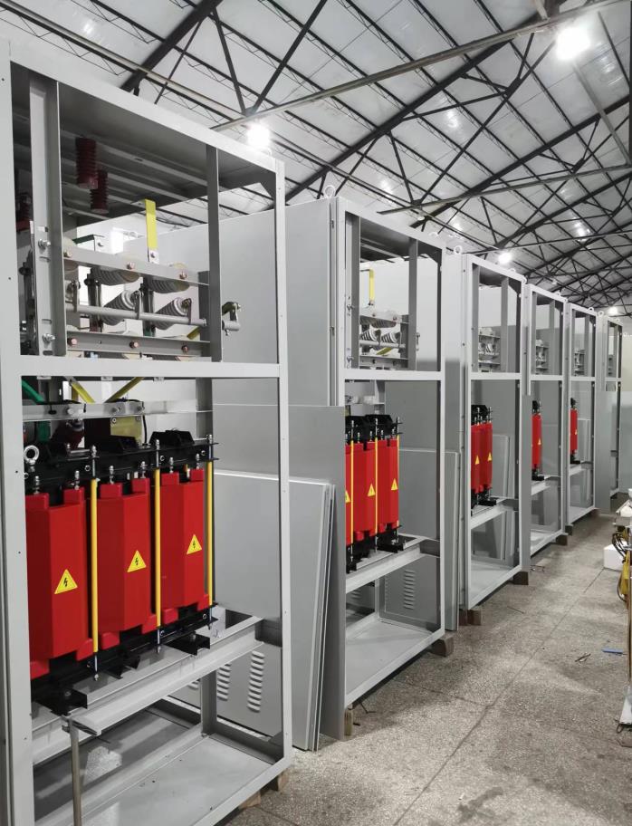 1.3. 分别将进线柜、电容器柜、电抗器柜按照布置图的位置摆放在底座上。将位置对正并紧固好螺栓。